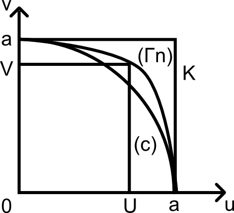 Un + Vn = an est une courbe (Γn) comprise entre le cerle ( C ) U² + V² = a² et le carré K de côté a.