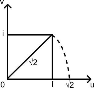 En ( √2, 0 ) mais n'ont pas rabattu i sur ( ou ) en ( 1,0 ), sinon, l'ensemble des nombres complexes C n'existerait pas.