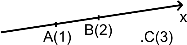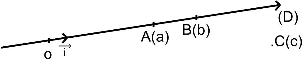 Soit c ∈ R ; c ≠ a , b alors le point C ( c ) ∉ ( D ). En appliquant ce principe aux points A ( 1 ) et B ( 2 ) appartenant à ( Ax )
