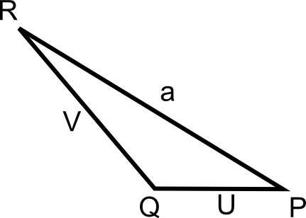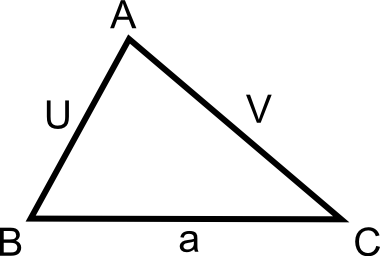 Les côtés du Triangle [AB] , [AC] , [BC] sont des segments de Droite représentés par des Réels U , V , a. Or, d'après DEDEKIND, il y a correspondance bijective entre les Réels R et les points d'une Droite munie d'une origine o et d'une unité